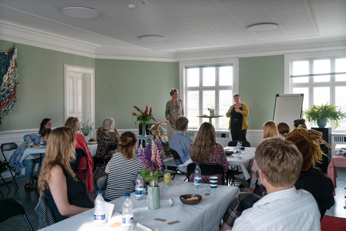 Pernille Dige Weltz fra Play Collective afviklede en ”Kreativ på kommando”-workshop med mange gode reflektionsspørgsmål, skrive-prompts – og ikke en mindst en meget intens visualiseringsøvelse, der krævede stor indsats fra mange og gjorde tilsvarende stort indtryk.