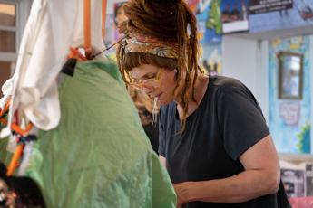 ”Det har været helt vildt fedt at være her i dag. Når jeg er skabende, er jeg alene i mit værksted. Malere er nok lidt anderledes end musikere og skuespillere, som interagerer mere med andre kunstnere. Jeg skal hente motivation i mig selv; regenerere og udvikle kunsten alene. Derfor er jeg glad for, at vi har den her udveksling. Det var også dejligt at høre andre tale om, hvordan arbejdet med børn og unge kan være udfordrende. Min udfordring er også at finde balancen mellem at skabe selv og udvikle min kunst, og så være ude med børnene. Jeg skal holde min kunst i top for at kunne give noget og inspirere, så jeg ikke er på autopilot og laver de samme ting hver gang.”