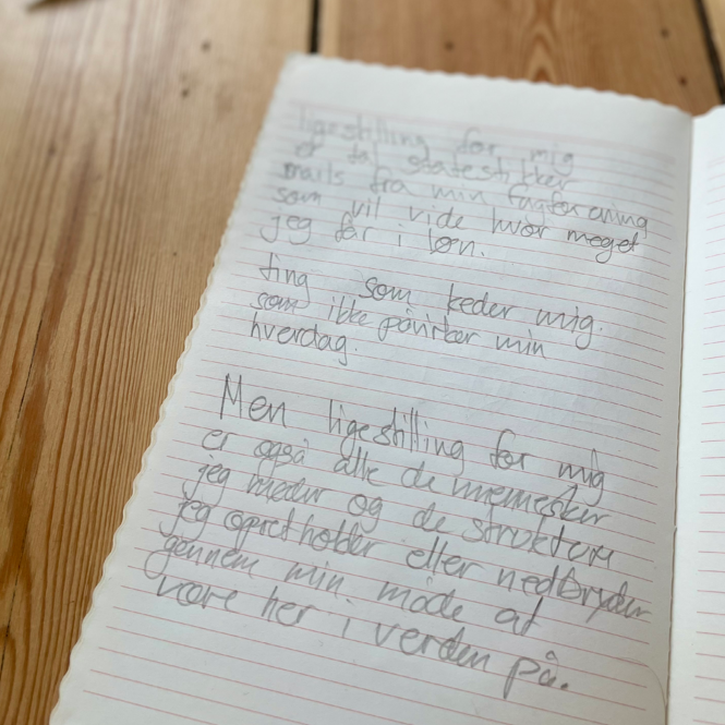 ”Det har været dejligt at være her med de unge. Det var en meget intens workshop – jeg tror, de var trætte bagefter – og også meget inspirerende. Emnet var equality, men vi arbejdede med det som et utopisk tema; equality er noget, man skal arbejde for, ikke tage for givet. Det var fantastisk at arbejde med de unge, så jeg har glædet mig til at se, hvad de har lavet til i dag.”